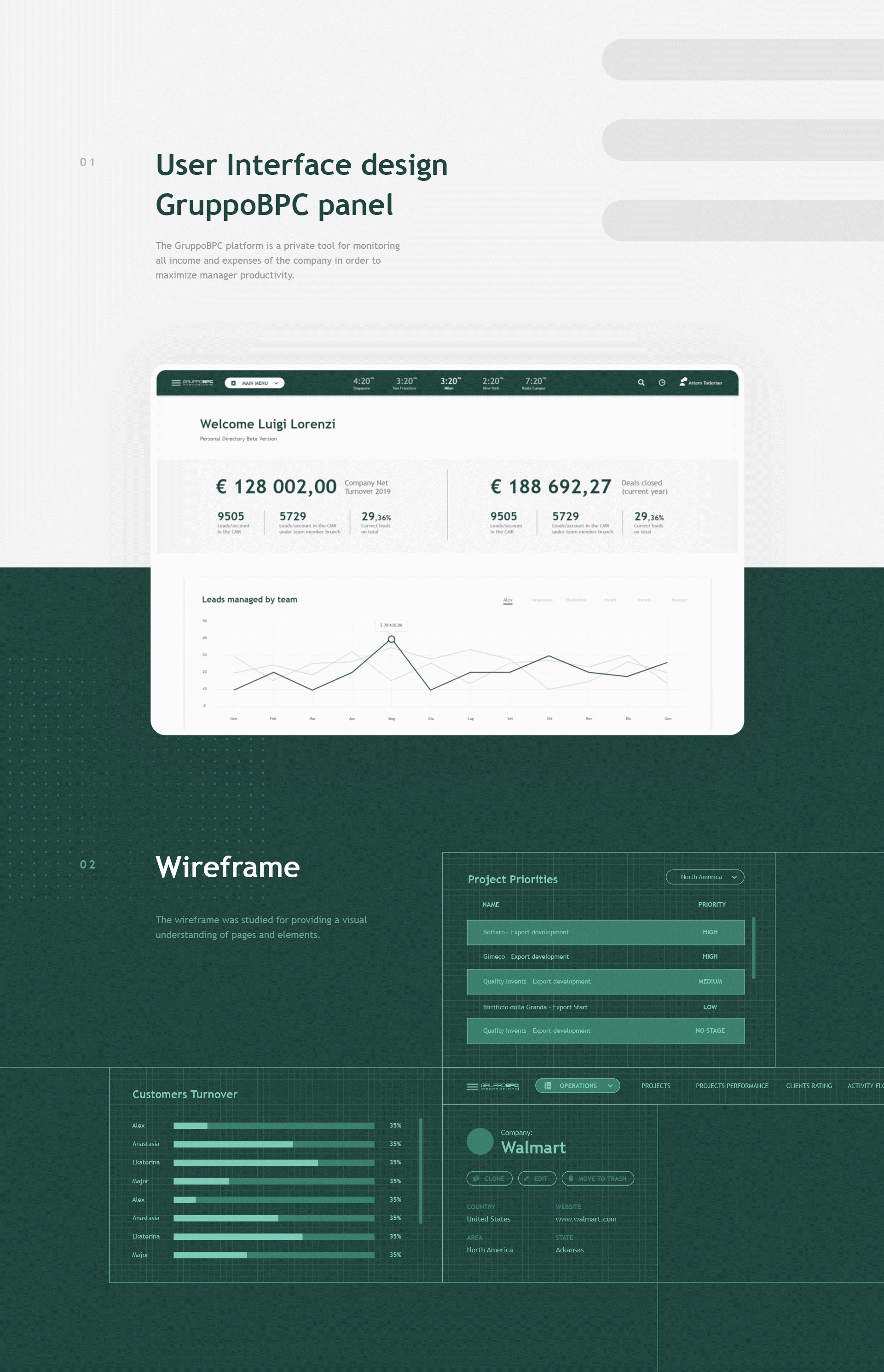 Developing the UI Design of GruppoBPC platform, a private tool for monitoring all income and expenses of the company in order to maximize manager productivity.
